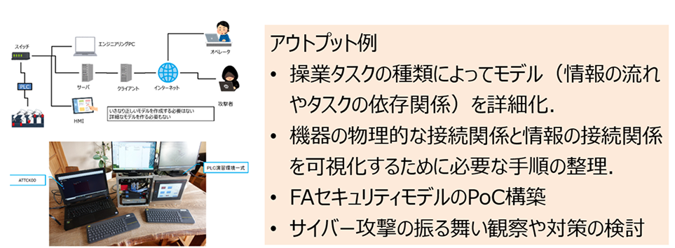 - 目的:製造制御装置および仮想製造ラインを用い,複数のサイバー攻撃シナリオを実行・再現し,攻撃の挙動とその影響,対策効果を可視化します.